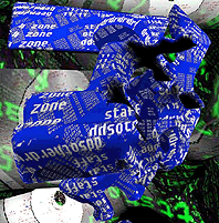 In 1997 we started to use VRML as one possible tool on KONSUM processvisualisation. Using text2speech to generate soundenvironments in spatial relation to objects were integral part of the setups mainly in VRML 2.0."Datavatars" influenced by KONSUM ideologies such as servertransparancy are also available. The Superfem Website was thenmainly used for live performances and events to generate simulatanously objects for theory lectures on netculture. See also different applications of konsum workers on museum projects online, appropriating just exhibition concepts instead of just displaying images of object in a simulated space. A virtual gallery application was setup in 1997 as well as a VRML workshop. |